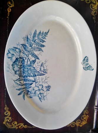 Bandeja de cerámica de Sandeman Macdougal, con dibujos vegetales y una mariposa. Medidas 35´5 x 26cm.