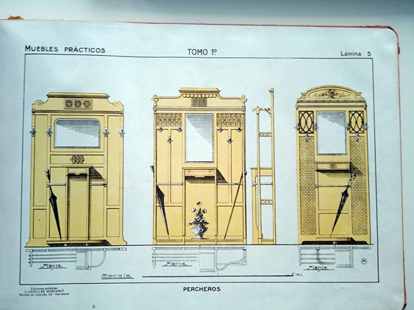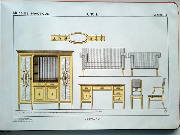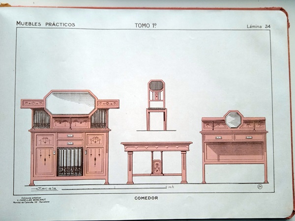 Catálogo de muebles art deco, » Muebles prácticos» El tomo 1º con 100 láminas y tapas de cartón.Realizado por J.Artigas. Ediciones artísticas, sucesor de J.M.Fabre. En estas 100 láminas se incluyen vestíbulos, despachos, comedores, dormitorios, salones, muebles de fantasía, cortinajes, etc.