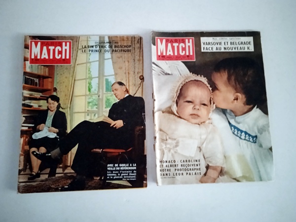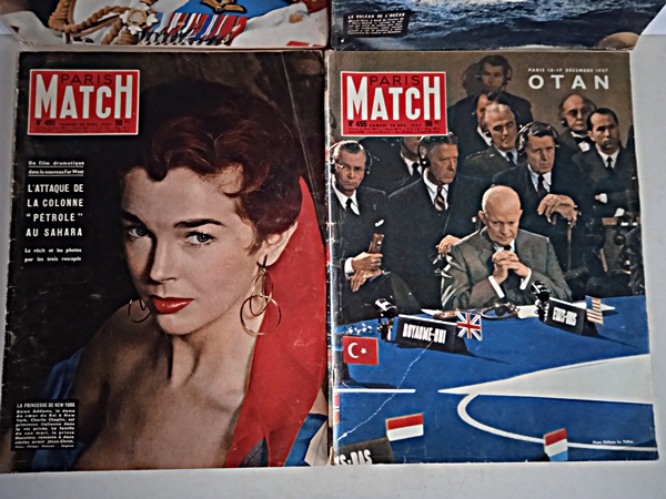 Lote de revistas Paris Match años 50, un total de 12, con artículos de personajes de esa época, y ese excepcional color que las caracteriza, incluiría los números: 410, 446, 451, 455, 463, 464, 473, 481, 482, 494, 499, 675.